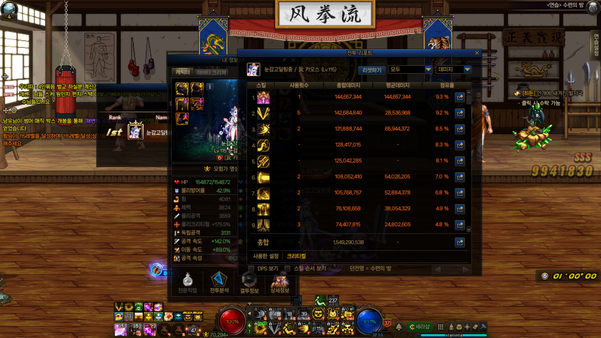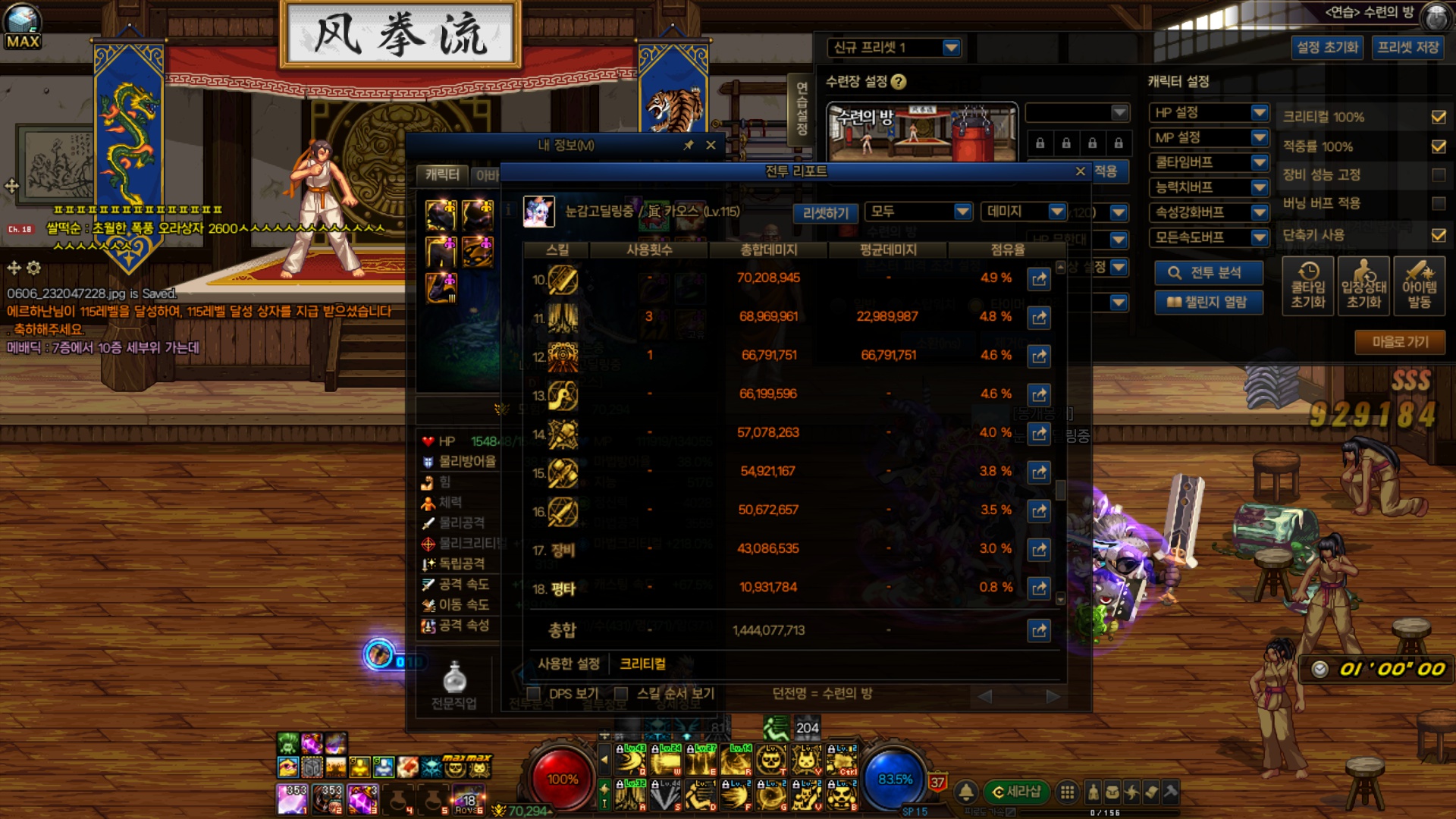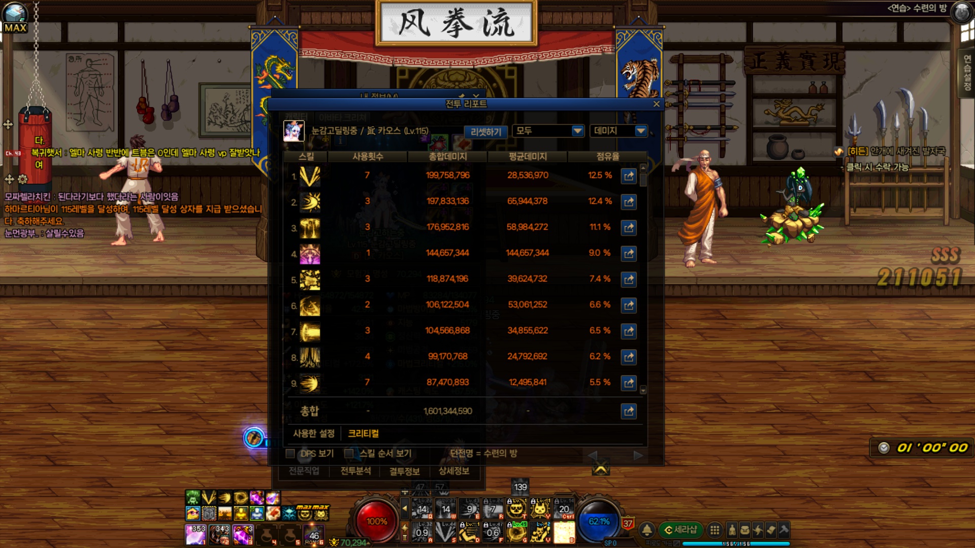 그리고 딜표들은 샌드백을 거의 1시간 넘게치며 고점으로 뽑아온 딜표입니다