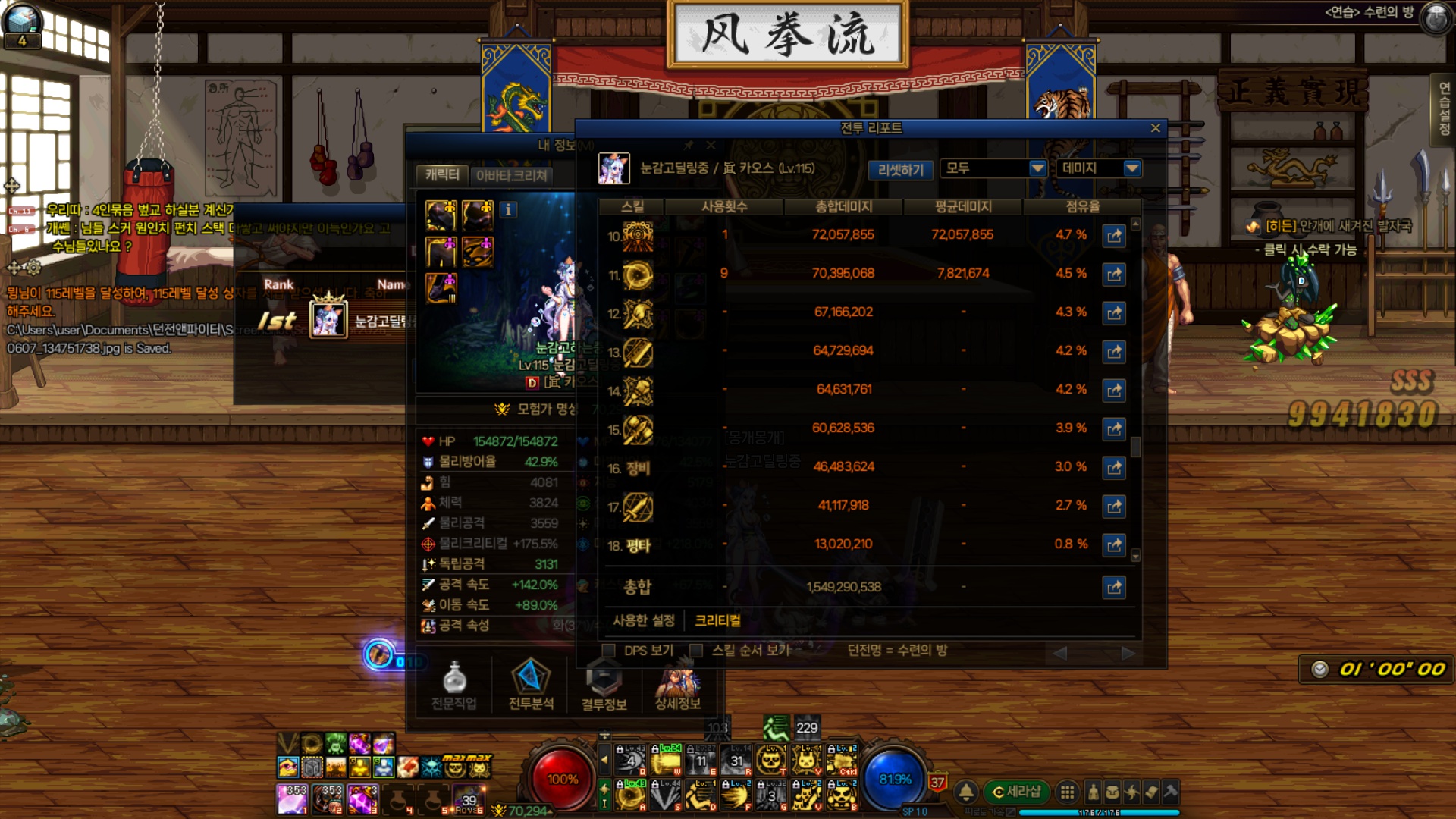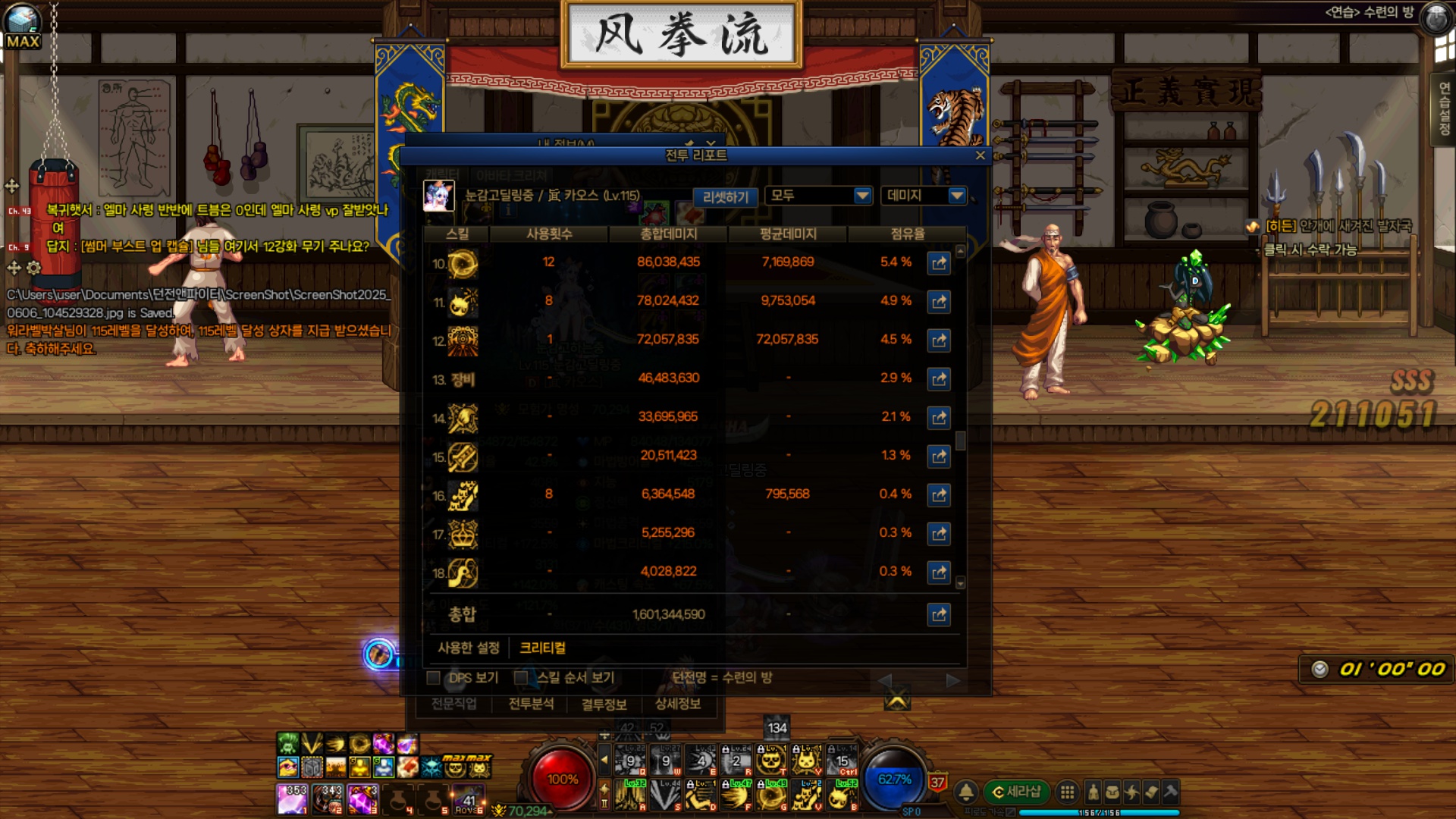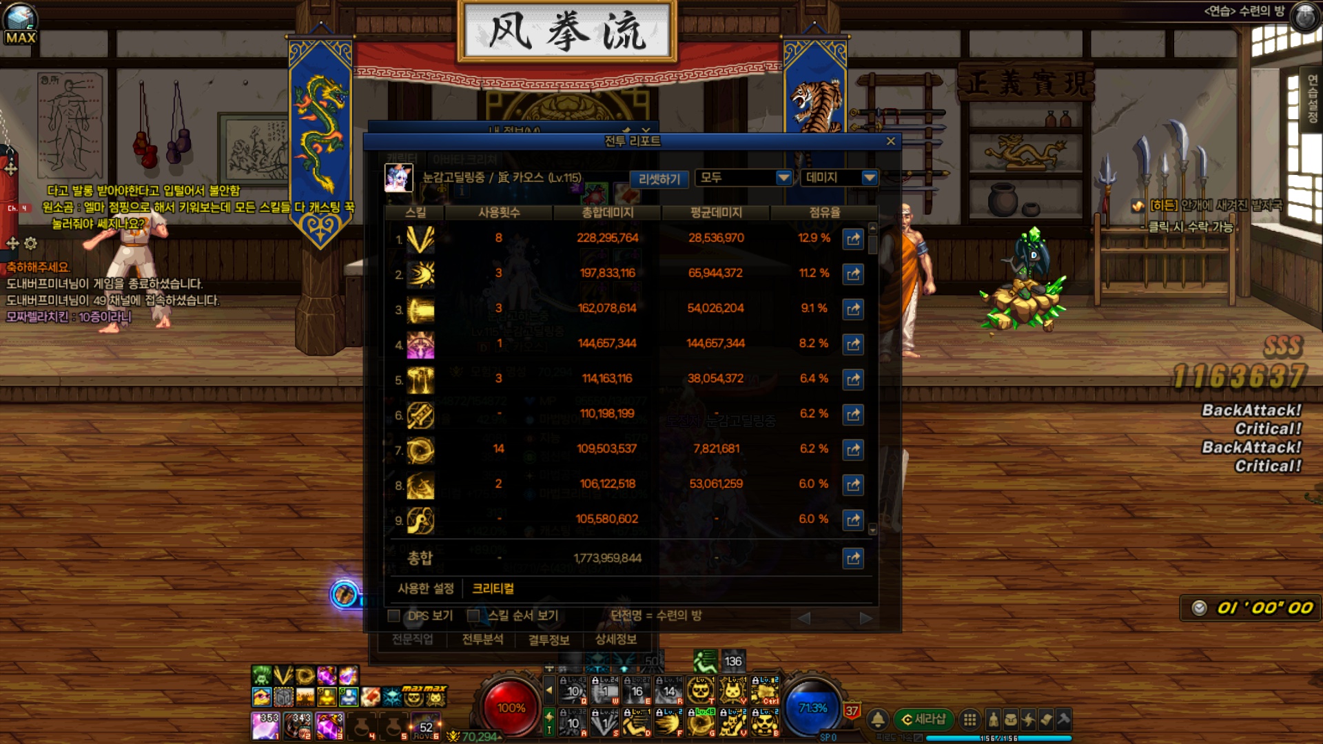 그리고 딜표들은 샌드백을 거의 1시간 넘게치며 고점으로 뽑아온 딜표입니다