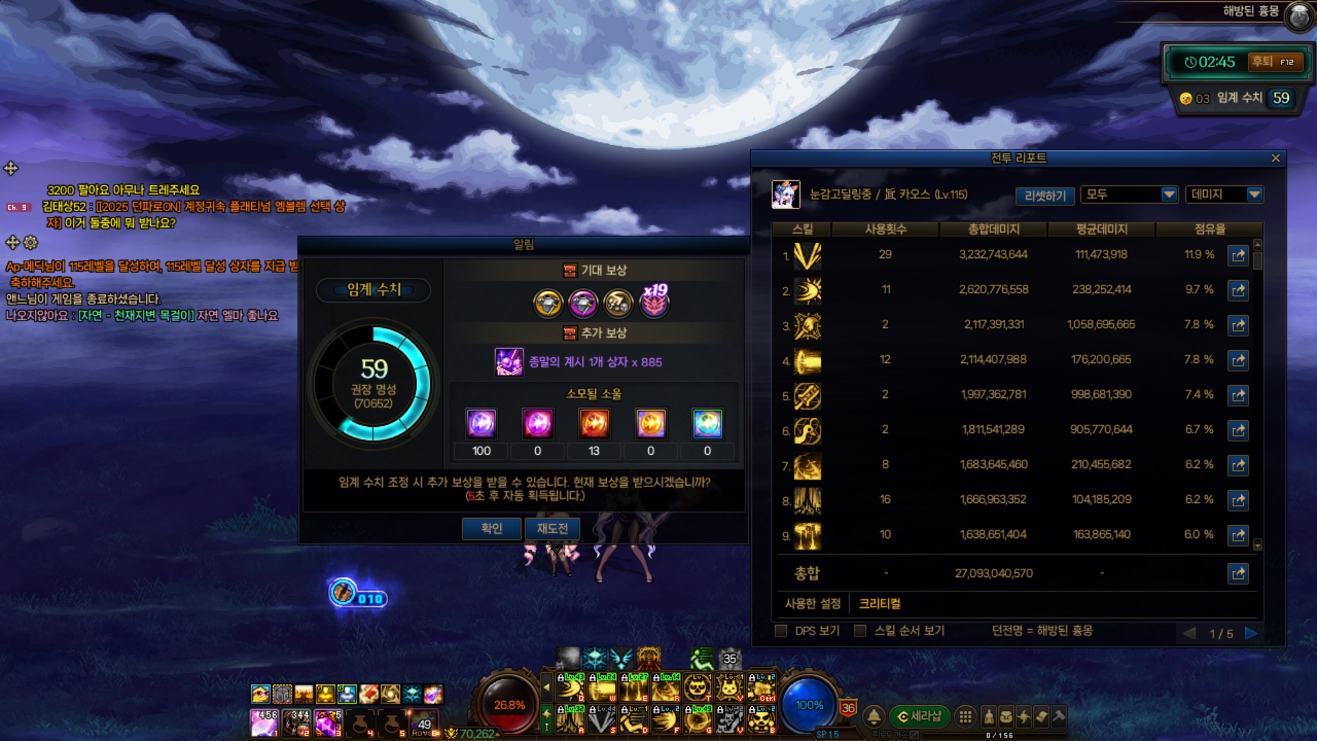 그러면 이제 '그래봣자 소환마신 실전가면 딜 박살나는거 아니냐?' 라고 하실수 잇어서 이번 흉몽 제르미오 59단계로 친 딜표 보여드리겟습니다.