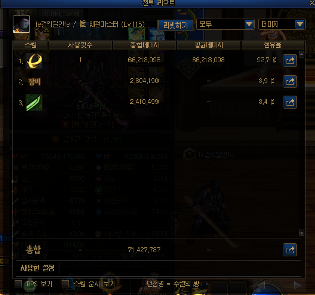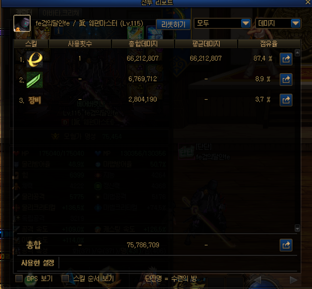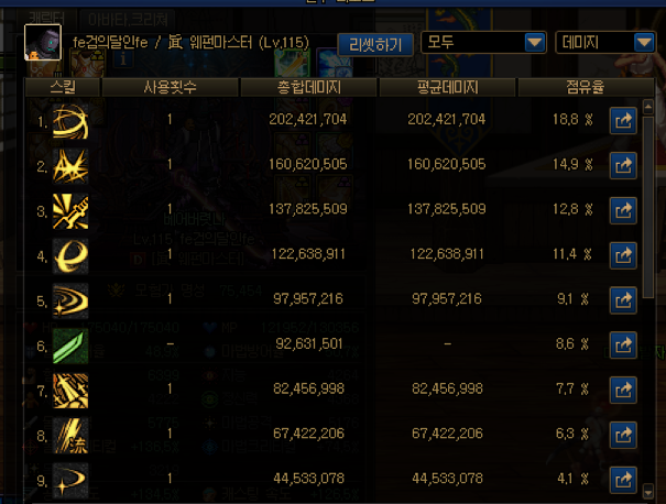 딜표에 6번이 자상데미지인데 점유율이 꽤 나오는 편이죠?