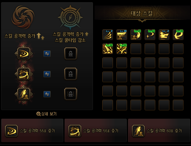 스킬강화같은 경우엔 심검 류심승은 필수로 채용하시구