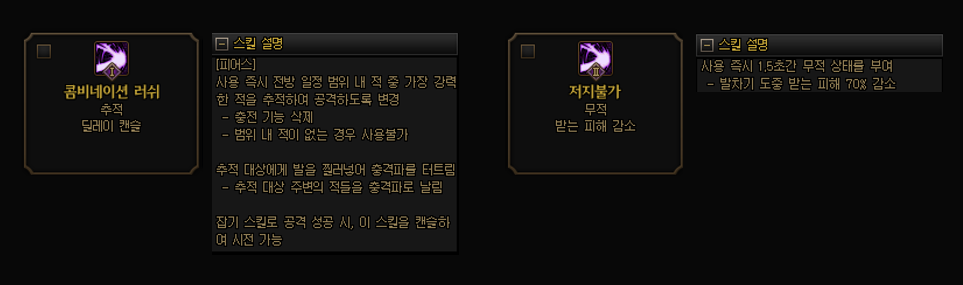 무적시간이 짧아진다는 단점이 존재하여 일장일단의 스킬 개화로 사용에 호불호가 있습니다.