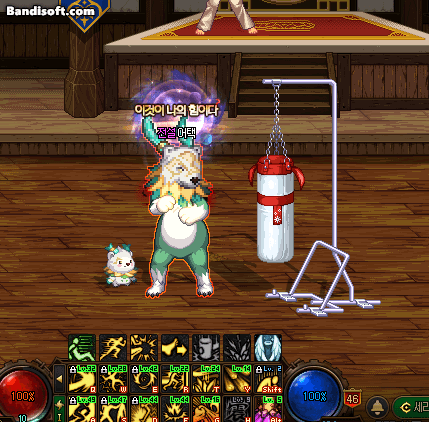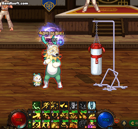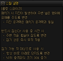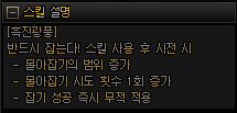 잡기 가능한 적을 대상으로 스킬을 사용하면 몹이 데굴데굴 구르는 재밌는 스킬입니다.
