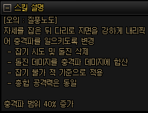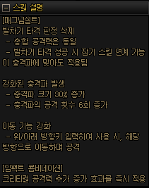 다만, 이 스킬의 경우 매그넘설트와 비슷하게 데미지 방식이 [잡기(돌진) 데미지] + [충격파 데미지]로 나뉘어져 있어