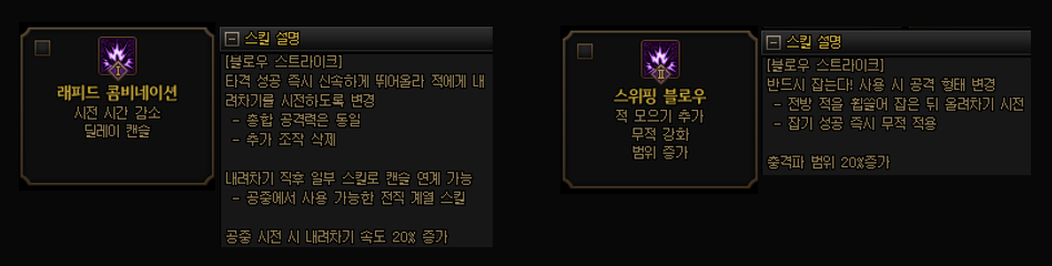 가장 먼저 그래플러의 35제 스킬 '블로우 스트라이크'입니다.