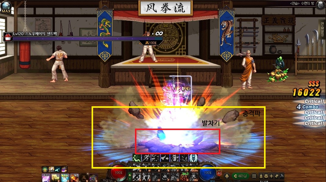 기본 프로세스가 몹을 몰아넣은 후 째트킥 한 방을 먹이는 컨셉입니다.