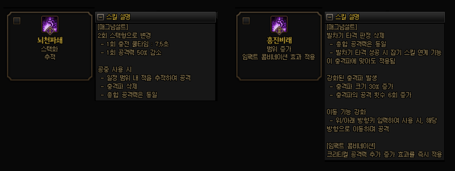 다만, 앞서 말했다싶이 피어스와 흑진광풍은 쿨타임이 따로 놀기 때문에 실전에서 활용하기 어렵고