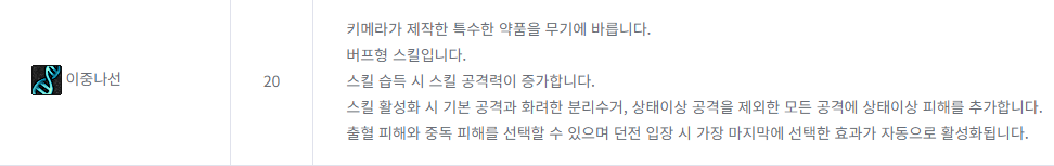 이중나선 버프로 공격 데미지의 일부를 상태 이상 데미지로 준다는 점이 있습니다.