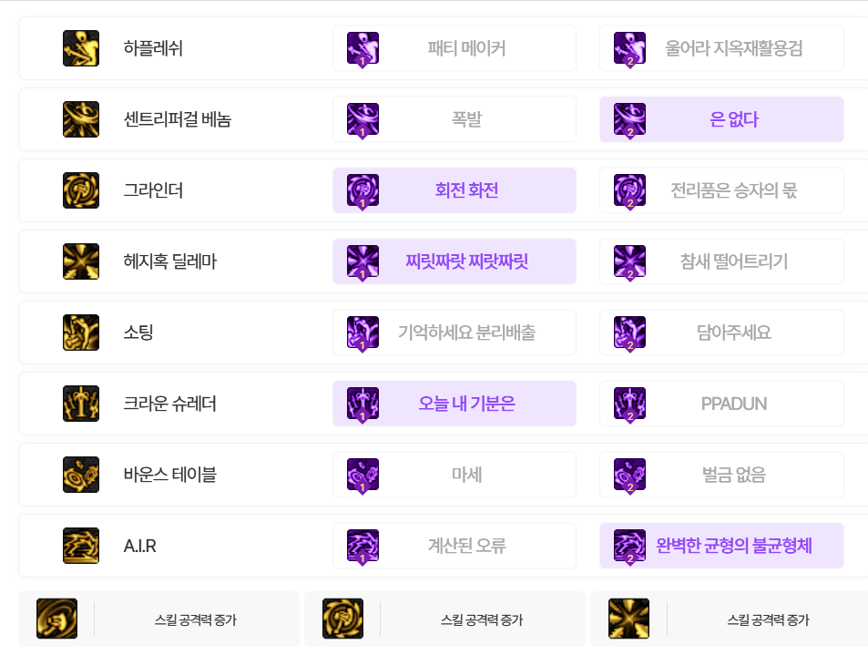 간혹 하플레쉬나 라이징문설트를 안찍으시는 분들도 계신데, 둘 다 1씩 찍어 놓으면 무적기나 이동기로 유용합니다.