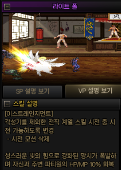 소소하게 좋은 VP입니다. 사진은 레쓰와 동시에 시전했어요. 한 0.5~1초정도 절약할 수 있습니당
