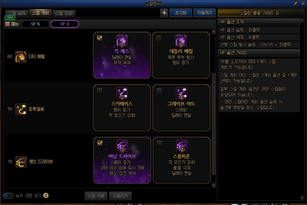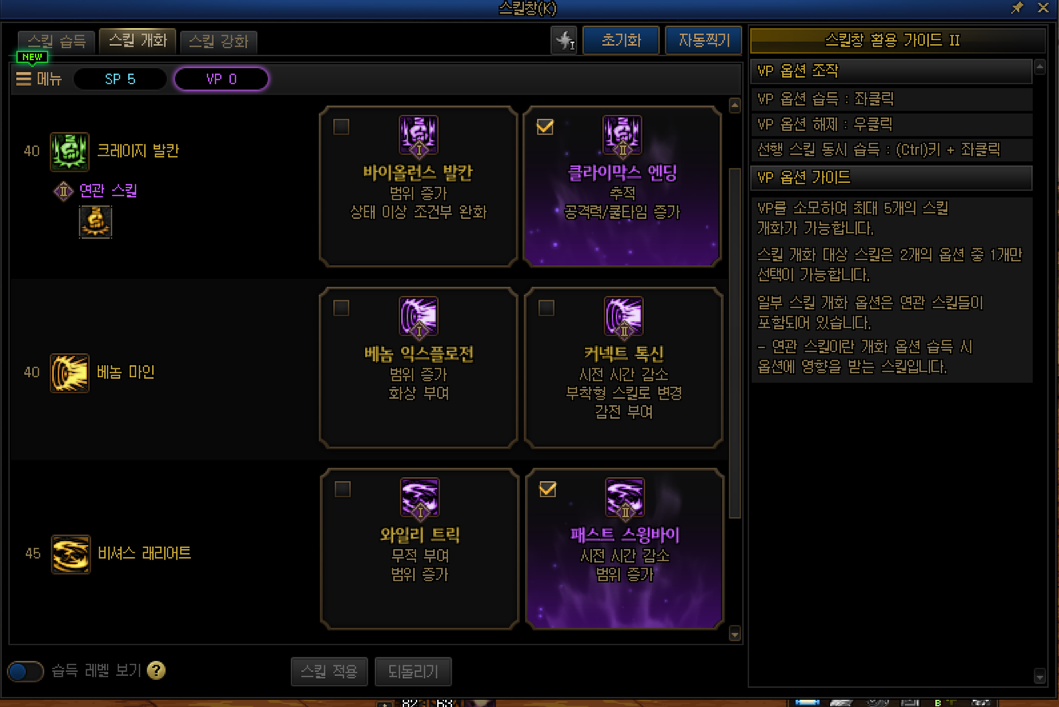 이어서 vp 및 스킬강화 보여드리겠습니다.