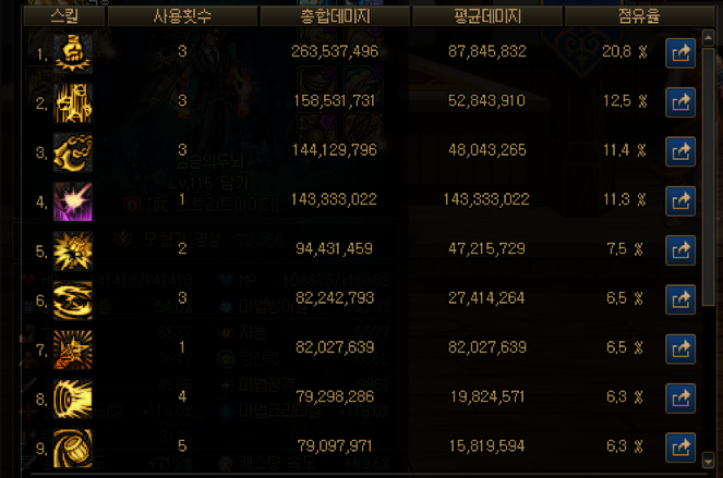 딜표에서 나타나는 것처럼 마운트와 체인 드라이브 그리고 45제 비셔스 래리어트의 횟수가 3회로 통일되는 것을 볼 수 있습니다.
