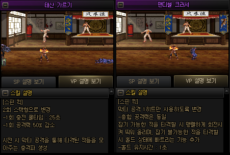 클로즈 킥은 탈리 삭제 + VP로 저점 보완, 홍염 질풍각은 VP로 대폭 간결해져서