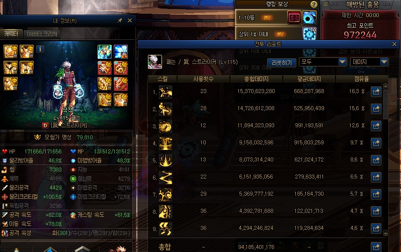 실제로도 강화 스킬을 제외하면 매우 비슷한 점유율이 나오는 것을 확인하실 수 있어요