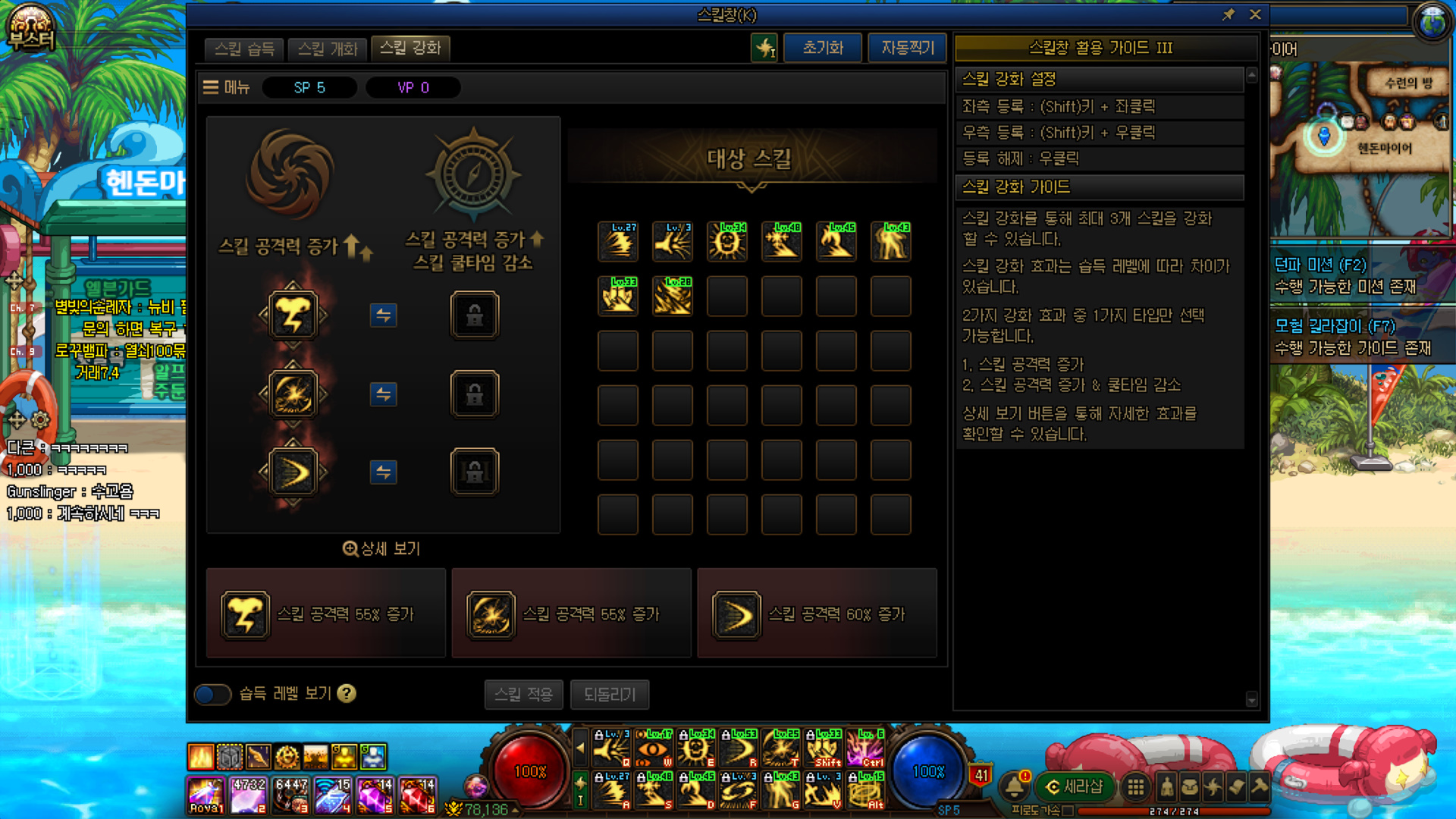이 중에서 우선 순위가 가장 뒤인 스킬은 남는 스포 주는 지열, 그 다음이 극폭염입니다.