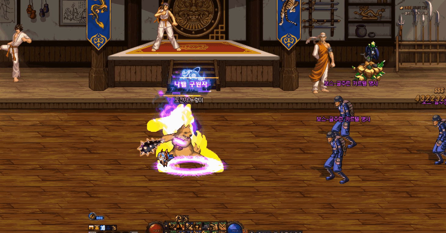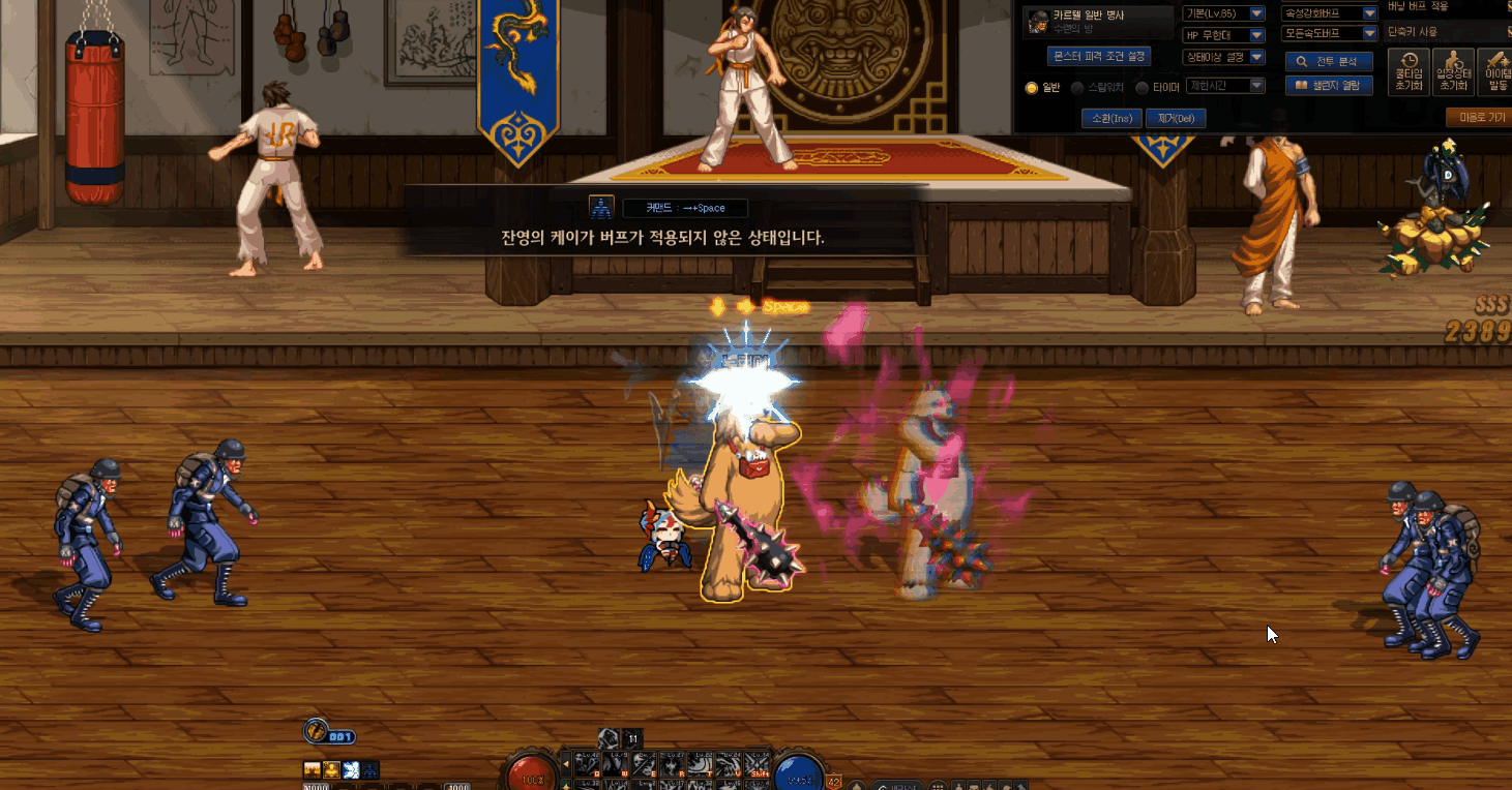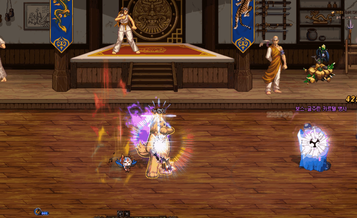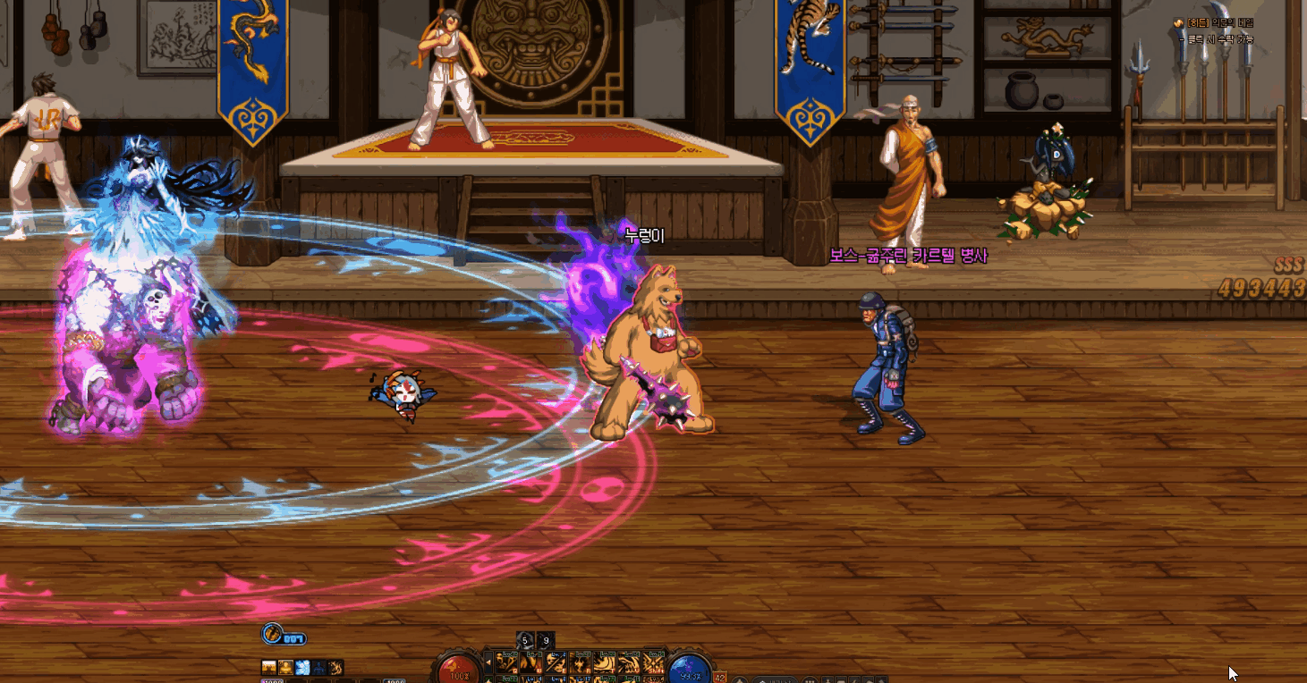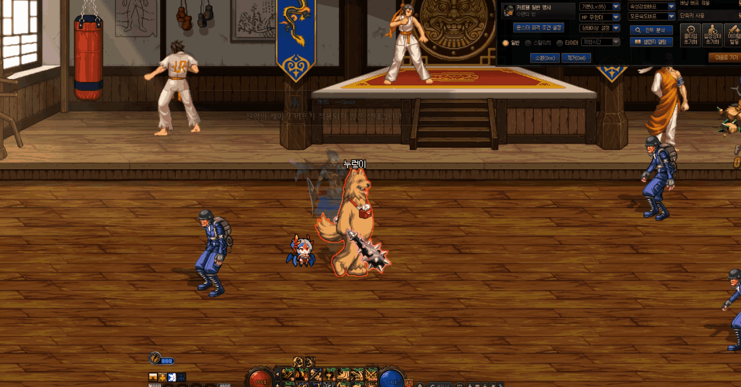 - 귀검편 사용과 함께 설치류 장판 스킬들을 동시에 사용하는 모습입니다.