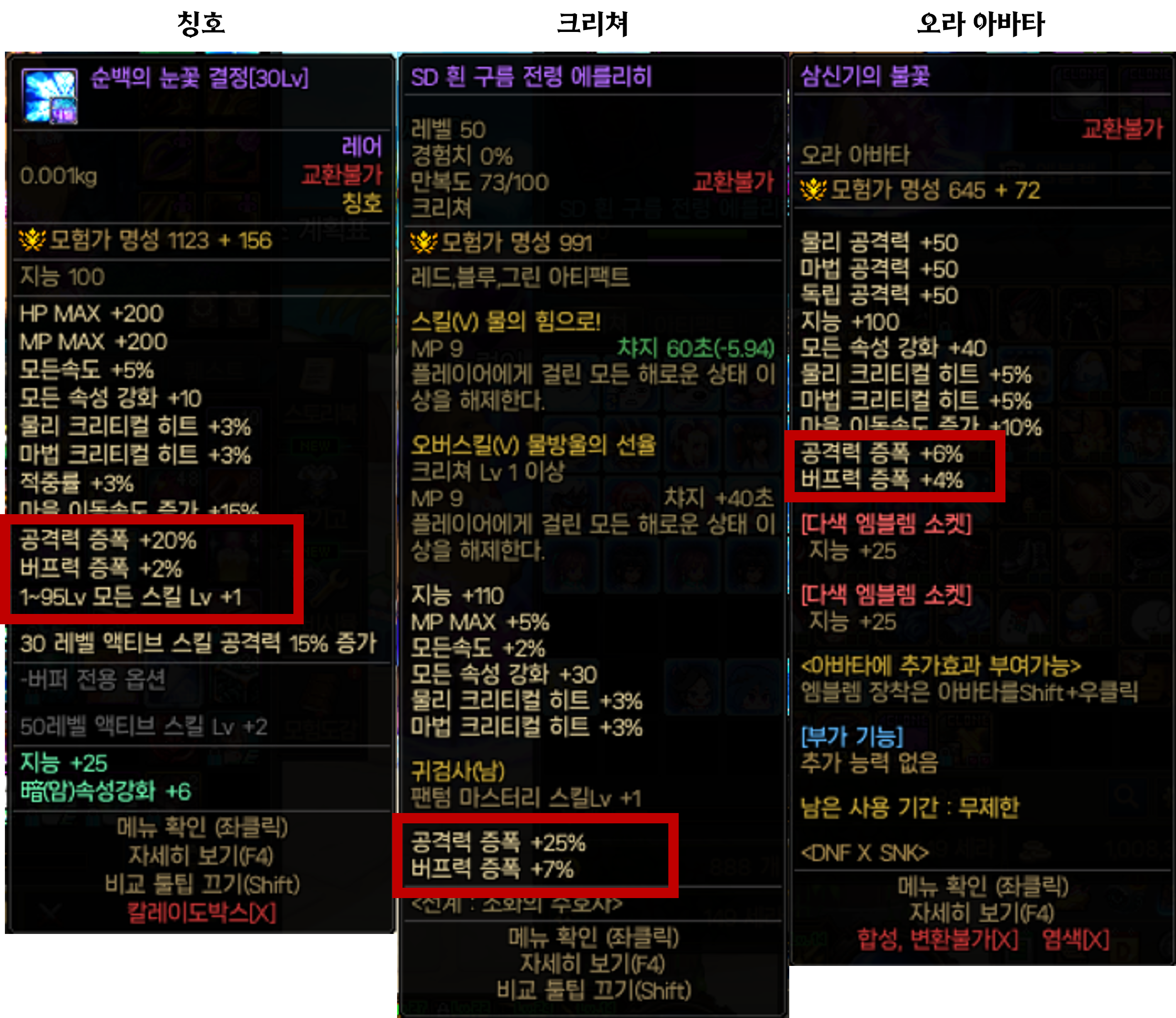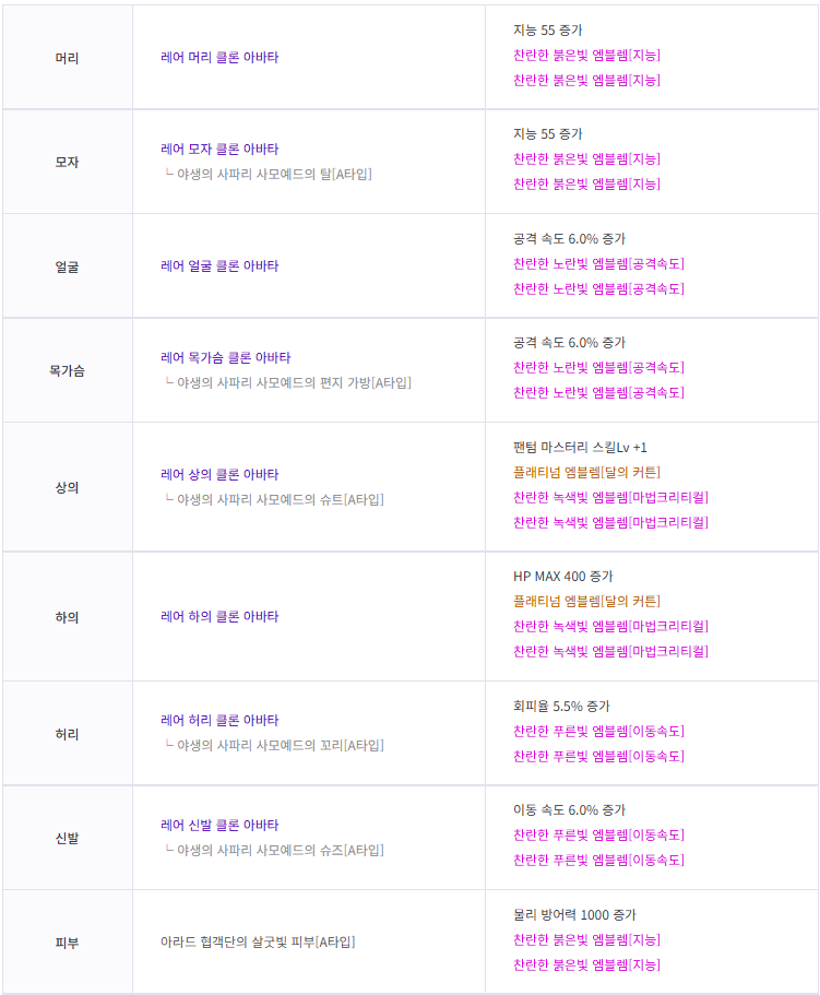 - 마법 크리티컬이 부족한 경우, 듀얼 엠블렘이나 오라, 피부, 무기 등에 추가로 장착하시면 됩니다.
