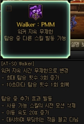 워커 탑승 스킬 중 시전할수 있는 유일한 무큐기입니다.