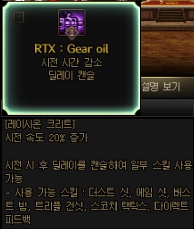 레이시온 크리트와 40초 딜량 차이가 크지 않기 때문에 지속딜을 고려한다면 레이시온 크리트 대신 채택하기 좋습니다.