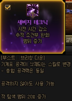 이후 설명할 모든 부스트 스킬의 특징으로는 일부 스킬을 제외하고 어썰트 전직 스킬의 후딜레이를 캔슬하여 시전이 가능합니다.