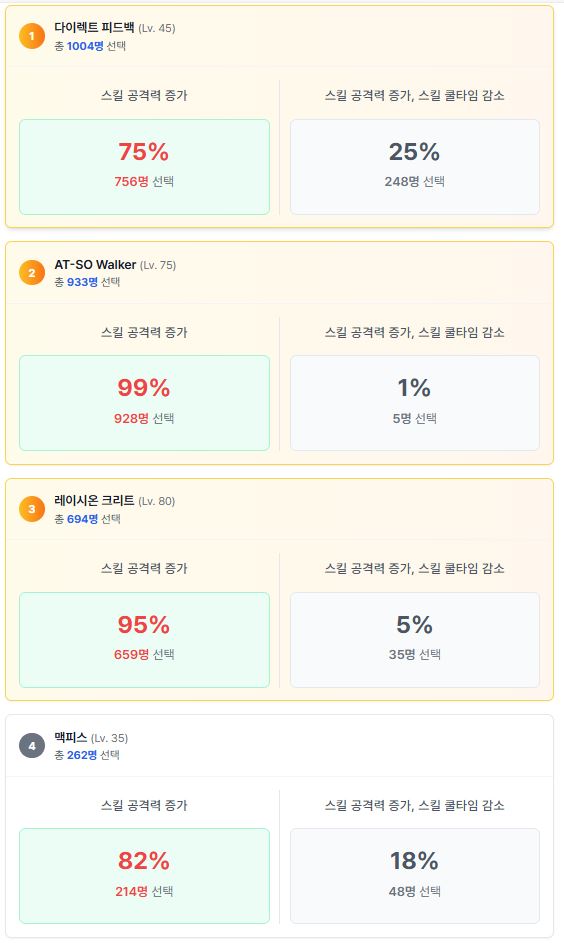 던파파워라는 사이트에서 상위권이 사용하는 스킬강화를 가져왔습니다.