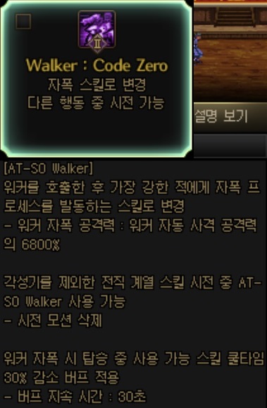 워커 탑승상태에서 시전한 스킬은 쿨타임 30%감소를 함께 받습니다.