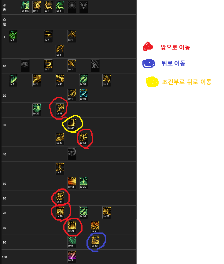 위 스킬트리를 채택하였을때의 스킬들에 간하여 짧은 설명을 적어놓겠습니다.