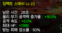 임팩트 스매쉬 스킬로 후딜 캔슬 시 30초 동안 버프