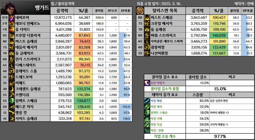 *옵젝 무기 밸류가 올라감에 따라 순위가 달라지긴했는데 정확한 확인 중이라