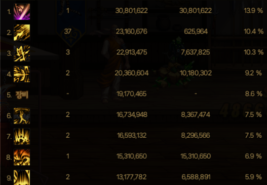 적당히만 쳐도 진각성기를 제외하고 스매쉬의 딜 비중이 가장 높은것을 확인 하실 수 있습니다.
