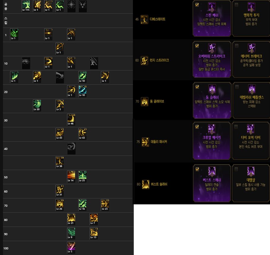 제 스킬트리는 100% 정답이 아니며 여러 고수분들의 스킬트리를 참고하여 제작하게 되었습니다.