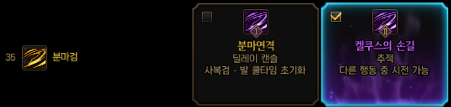 기본적으로 분마연격 딜레이 캔슬도 좋지만 켈쿠스의 손길에 추적기능과 다른 행동 중 시전가능이 붙어있어