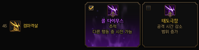 기본적으로 잡고 여기저기 내치는 스킬을 단타형스킬로 바꿔줍니다 또한 사복검 스킬 딜레이캔슬이 가능해 빠른 딜링이 가능하게 도와줍니다.
