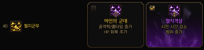 마인의 군대 VP에 공격력 쿨타임 증가 옵션이 있지만 특정 쿨감세트에서 사용하면 좋습니다 > 칠흑의 정화 세트
