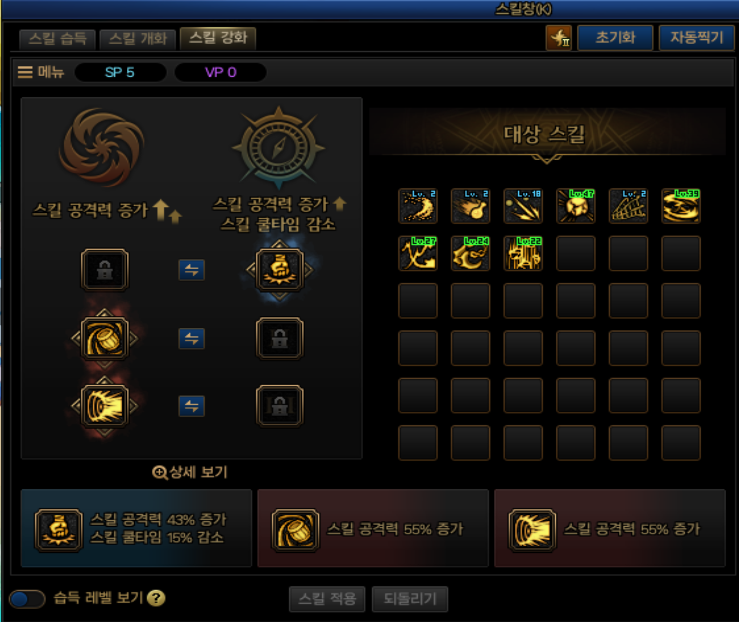 참고로 스킬 강화의 경우, 모든 스킬트리 전부