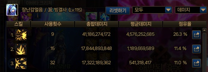 하지만 빙결사는 12각 데미지계수가 나쁜편이라 추천하지 않습니다.