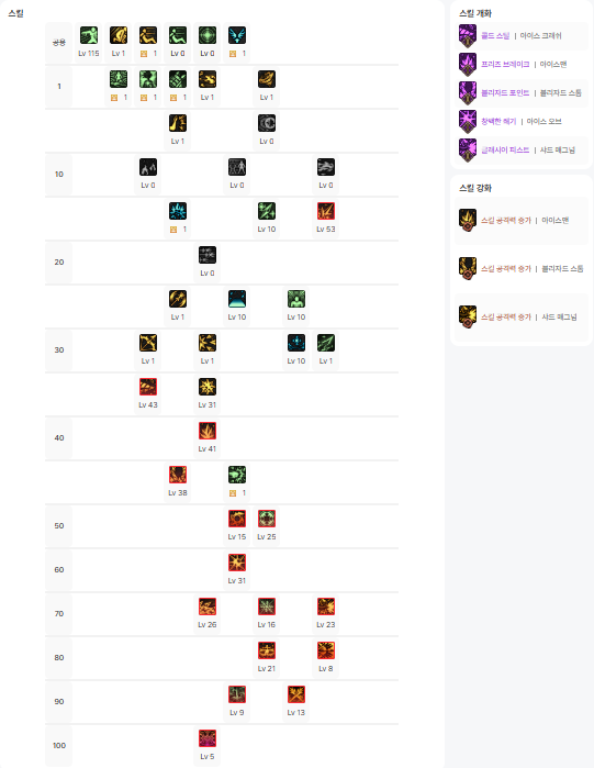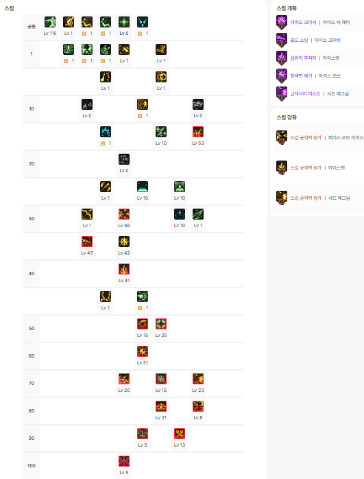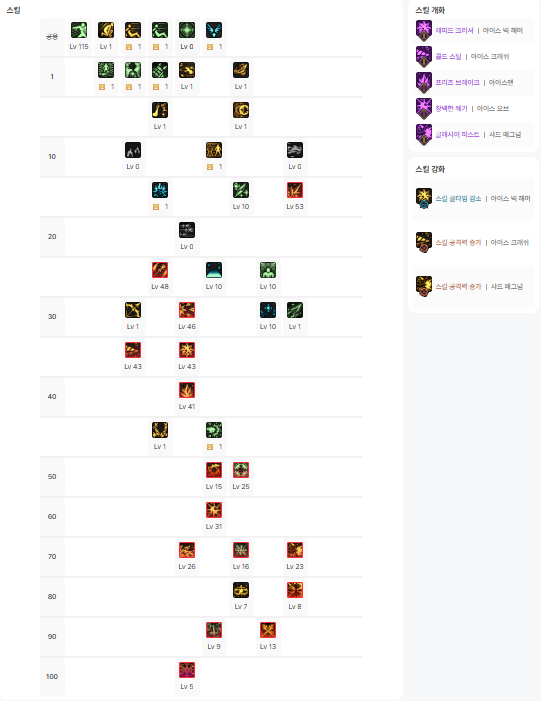 30제 스킬주제에 강화넣으니 스킬딜지분 3순위 먹는기본기  피어스오브아이스(이하 피오아) 의 강화를 추천드립니다.