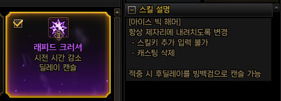 서릿발은 아이스필드의 느려터진 발동속도의 해결과 3타> 1타로 줄여주는 딜 압축이 좋습니다.