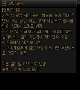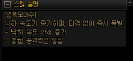 데미지가 너무 약해 아무도 찍지 않는 스킬입니다. 11월 패치 이후 쓸만해졌습니다.