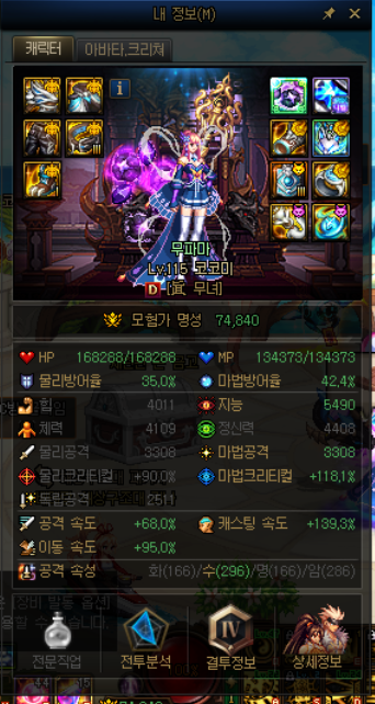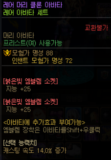 캐스트 속도의 영향을 많이 받는 직업이므로 머리, 모자 아바타 옵션을 캐스트속도로 맞추는 것을 추천
