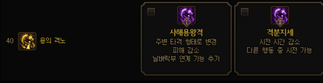 용의 격노의 범위가 주변으로 바뀌고 뎀감을 얻습니다. 시전중 날벼락부를 쓸 수 있는 추가기능도 얻습니다.