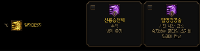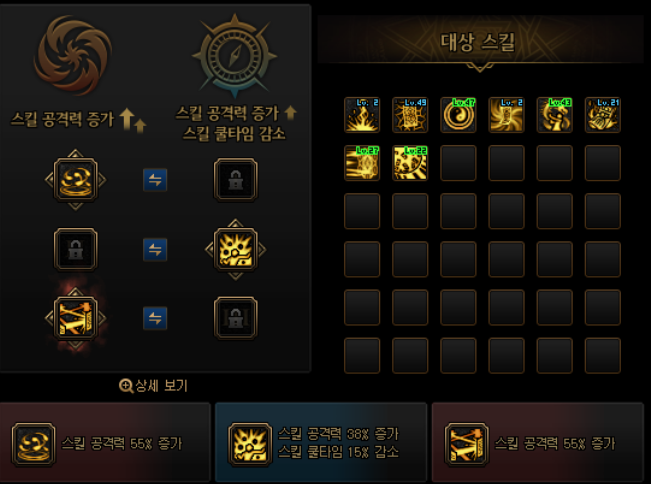 스킬트리. 스킬개화는 스킬 강화를 제외하고 칠흑과 동일 (스킬코드는 스킬강화때문에 다름)