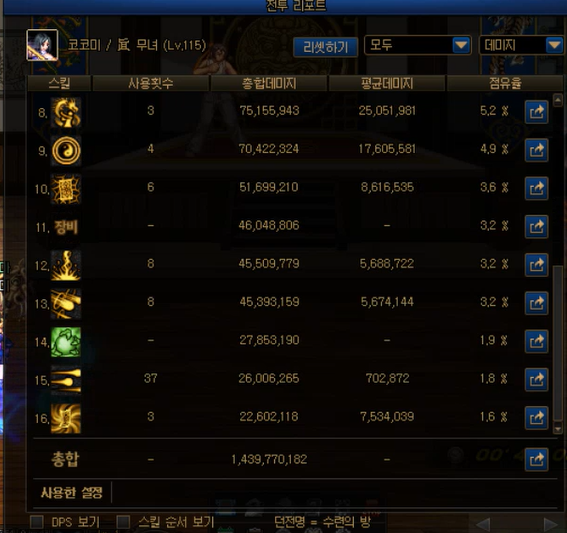 기본기 날-목-구 가 무려 10%정도의 비중을 차지합니다. 약한 무녀의 딜을 억지로라도 끌어올려봅시다.
