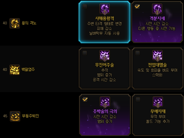 스킬강화 백팔염주, 용의 격노, 퇴마음양옥