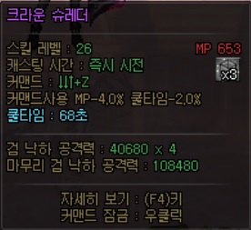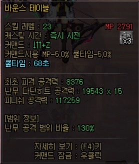 75제 스킬인 바운스 테이블과 70제 스킬인 크라운 슈레더 역시 스킬 쿨타임이 동일하며 데미지 역시 동일합니다.
