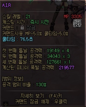 80제 스킬인 A.I.R과 45제 스킬인 헤지혹 딜레마는 스킬 쿨타임이 동일합니다.