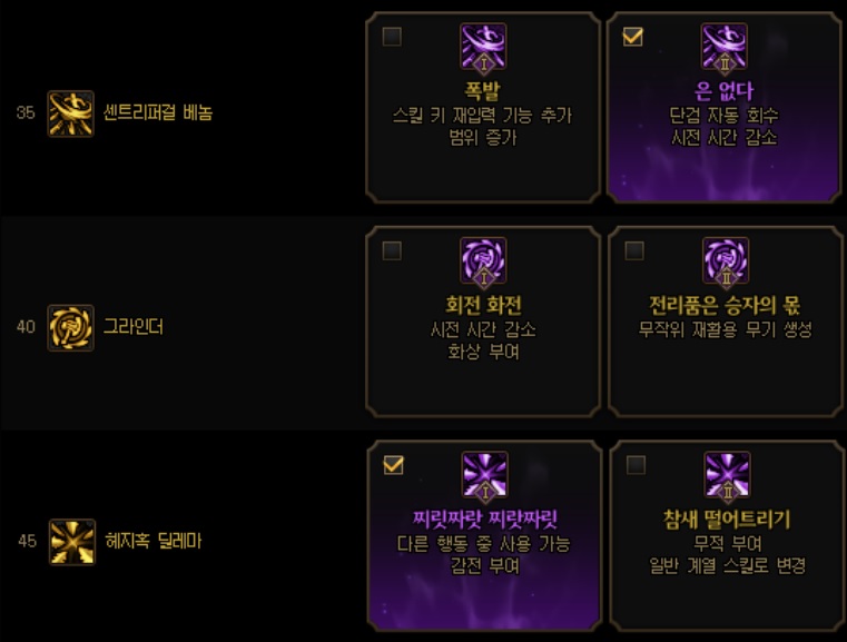 <은 없다>를 택하면 스킬이 설치기로 바뀌기 때문에