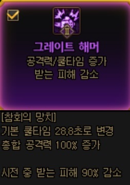 많이 언급했지만 버퍼의 솔플은 쿨타임이 전체적으로 짧기 때문에 쿨타임/공격력증가 효과는 단비와도 같다.