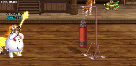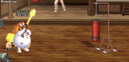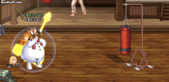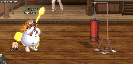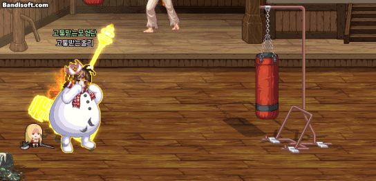 홀리가 벌서는 아저씨가 되어 공격을 한다.