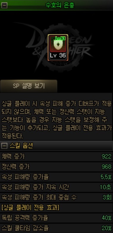 다만 이 수호의 은총은 힘/지능을 올려주는 지역버프에 영향을 받지 않기 때문에
